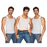 Sporto Men's Cotton White Derby Vest - Ribbed Fabric (Pack Of 3)
