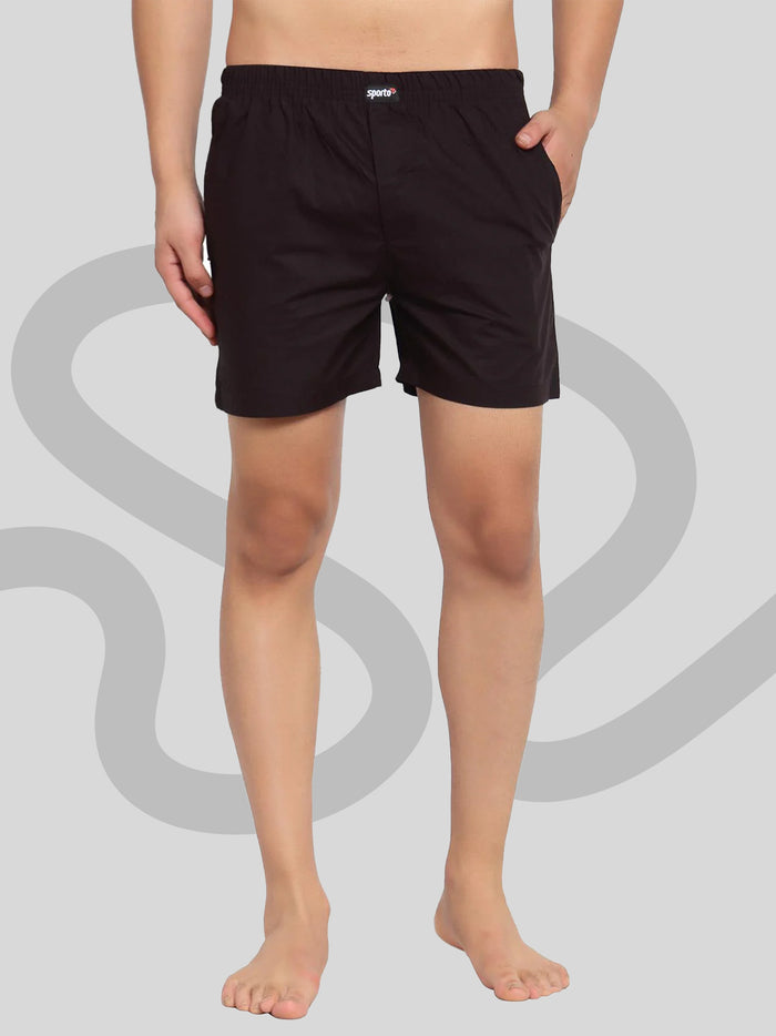 Sporto Men's Solid Boxer Shorts with Zipper - Black