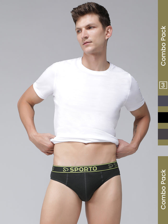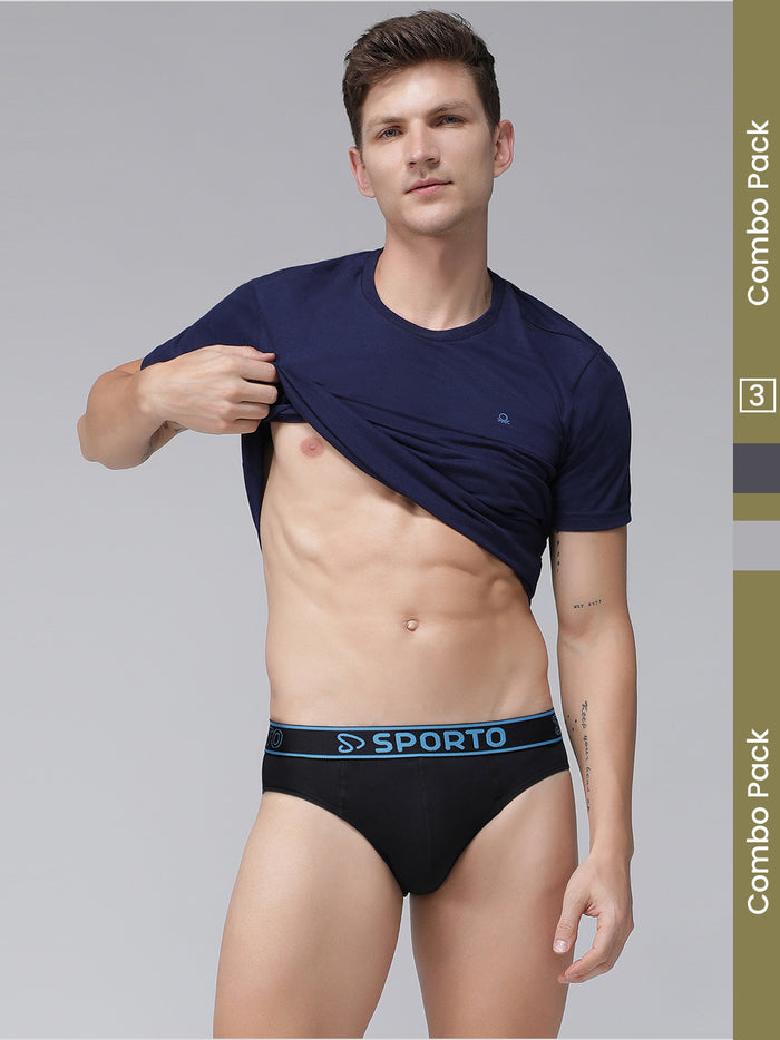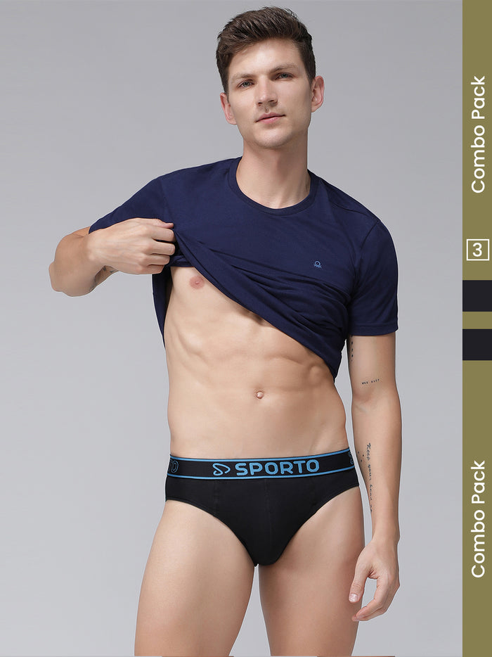 Sporto Men's Spandex Square Trunk (Pack Of 3) - Black
