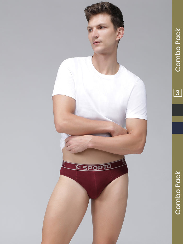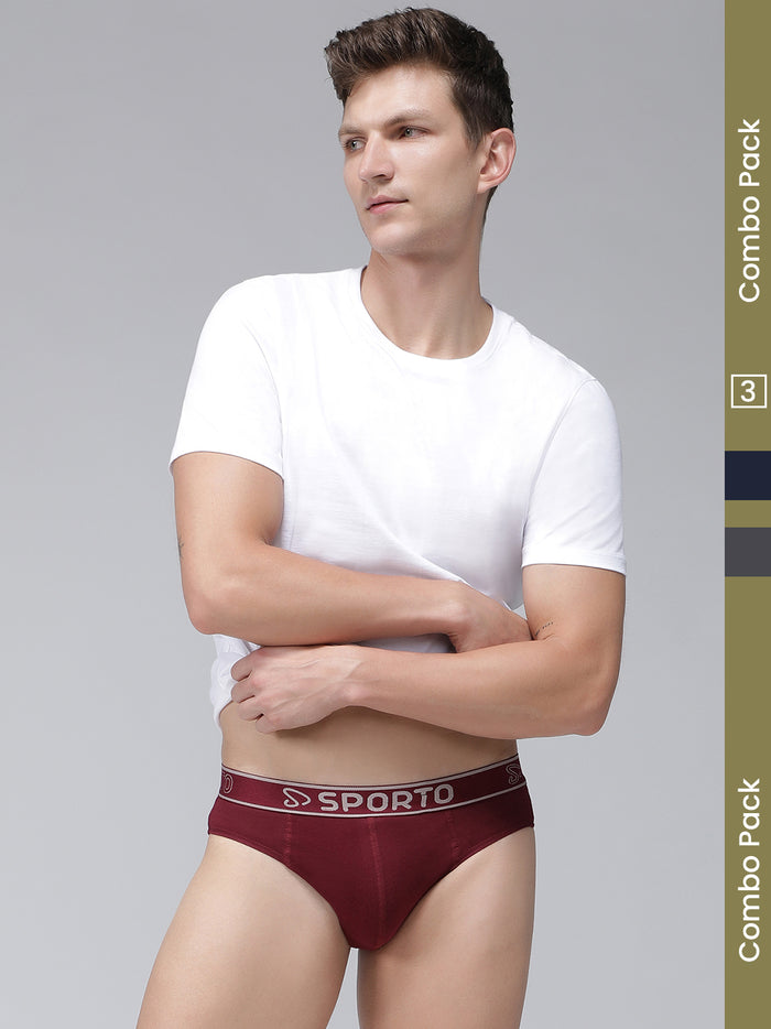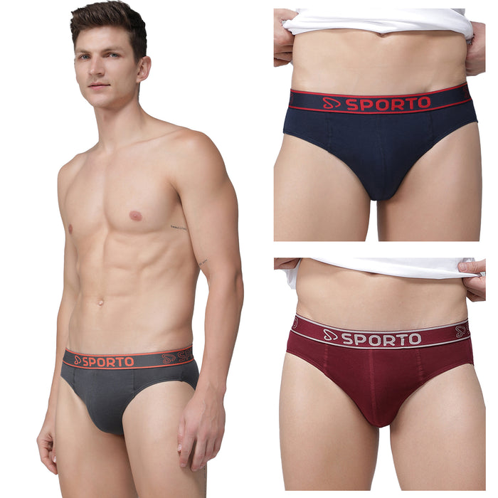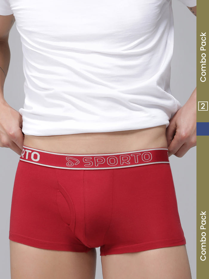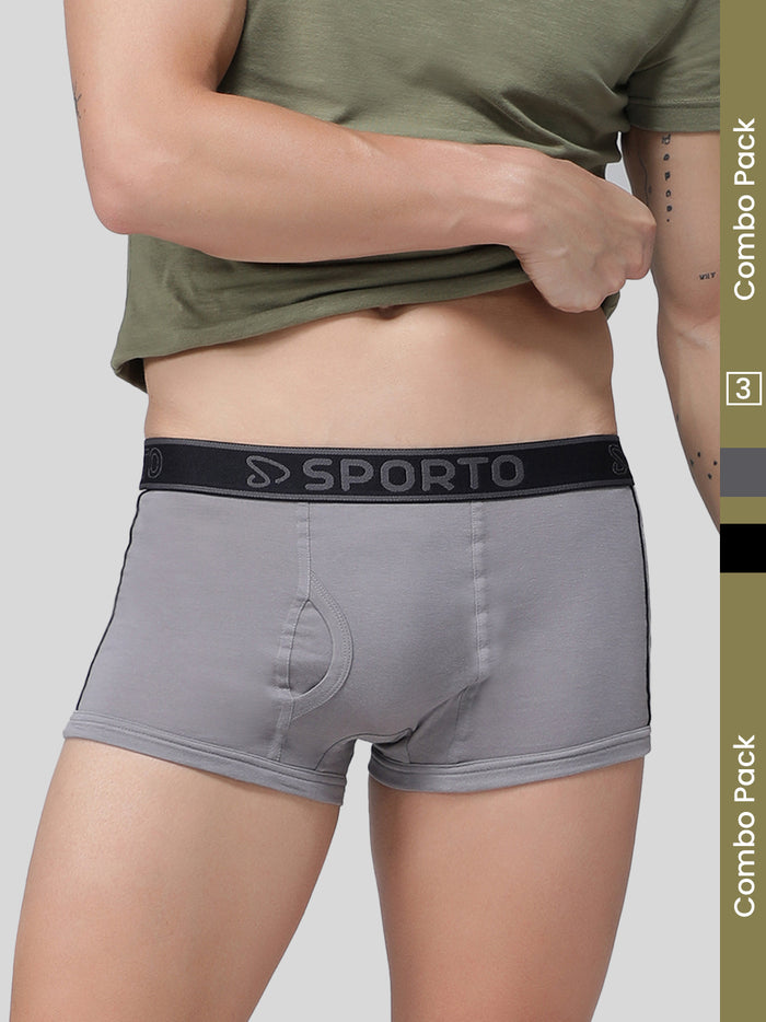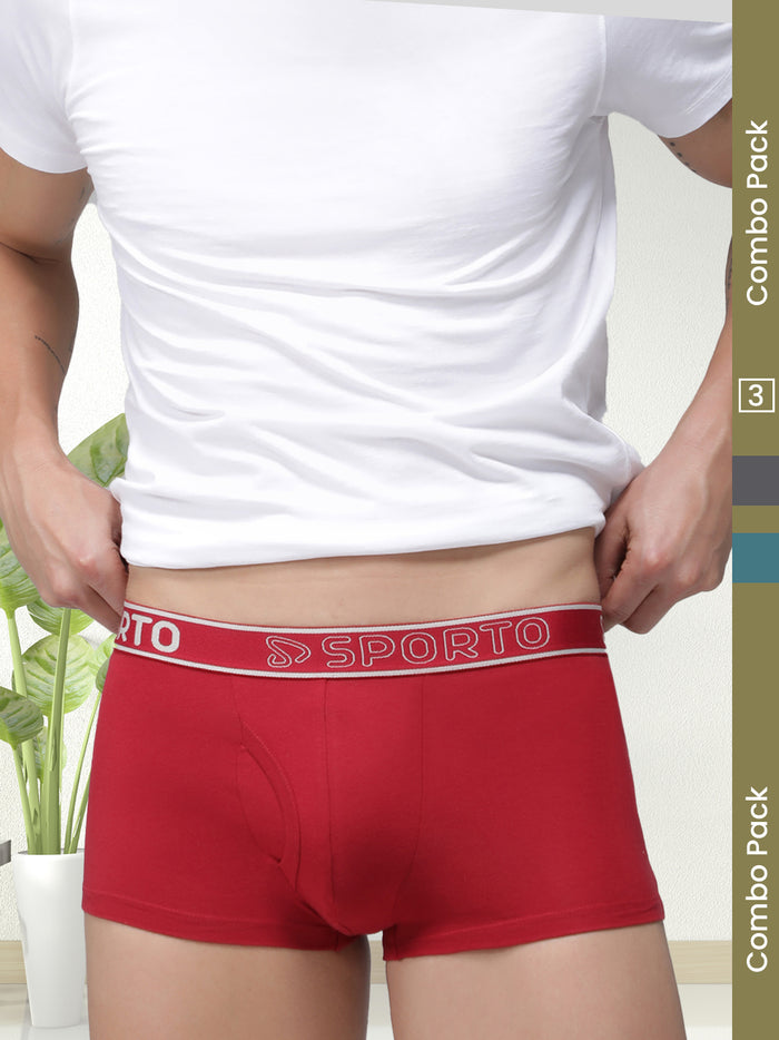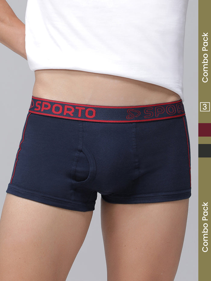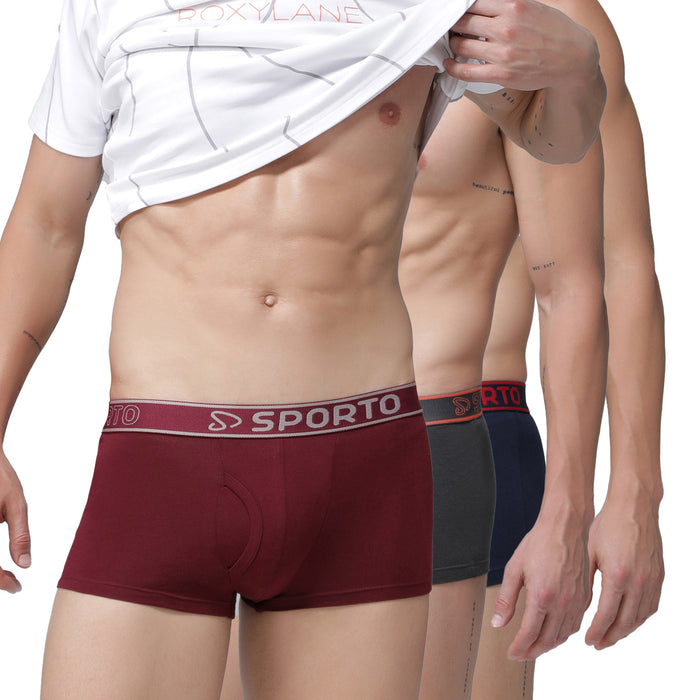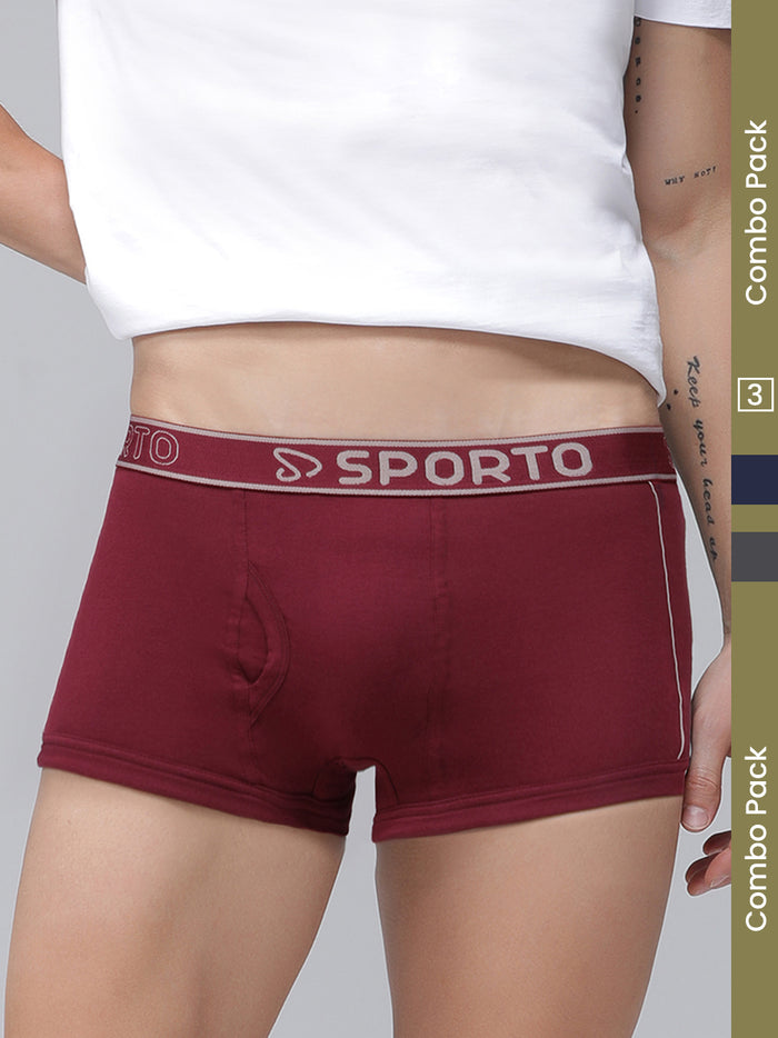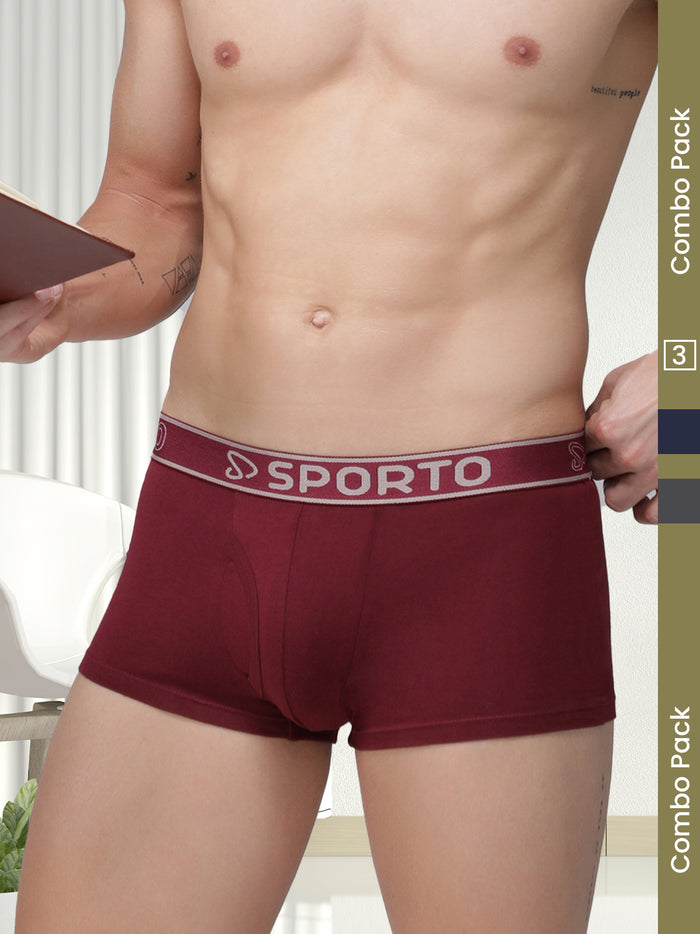 Sporto Men's Cotton Square Trunk (Pack Of 3) - Maroon + Navy + Charcoal
