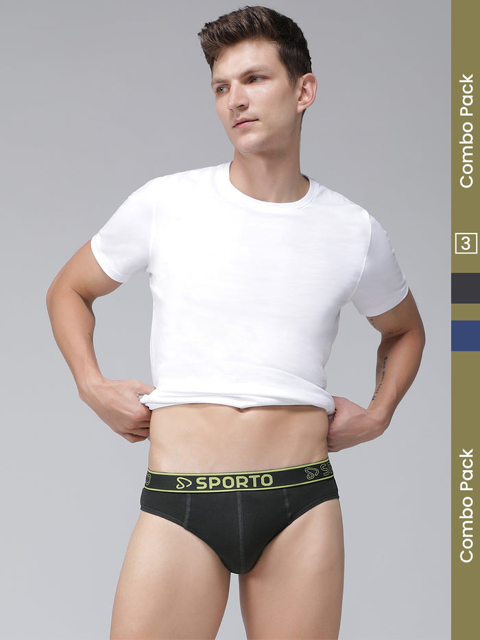 Sporto Men's Spandex Square Trunk (Pack of 3) - Olive + Charcoal + Denim Blue