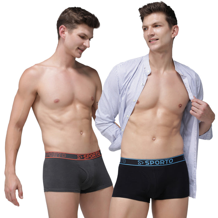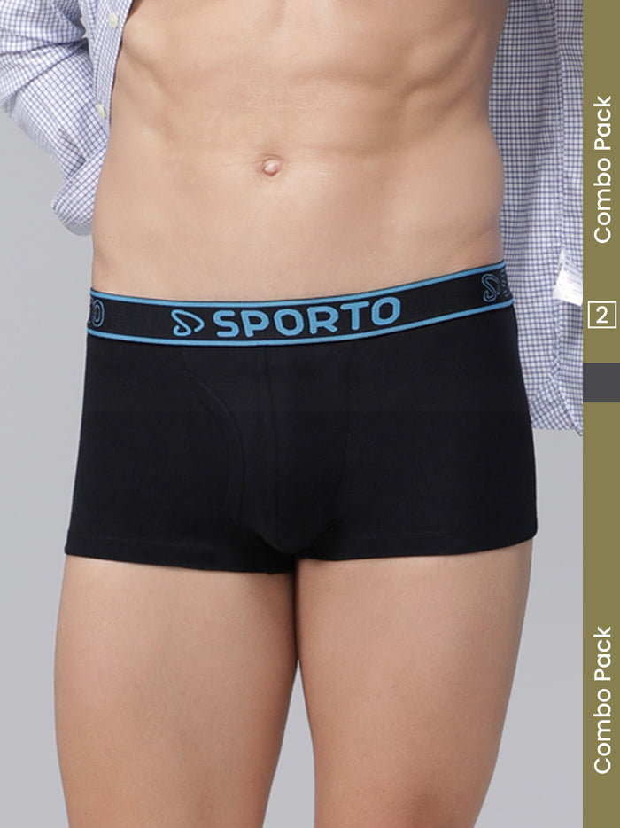 Sporto Men's Solid Spandex Square Trunk (Pack Of 2) - Black + Charcoal