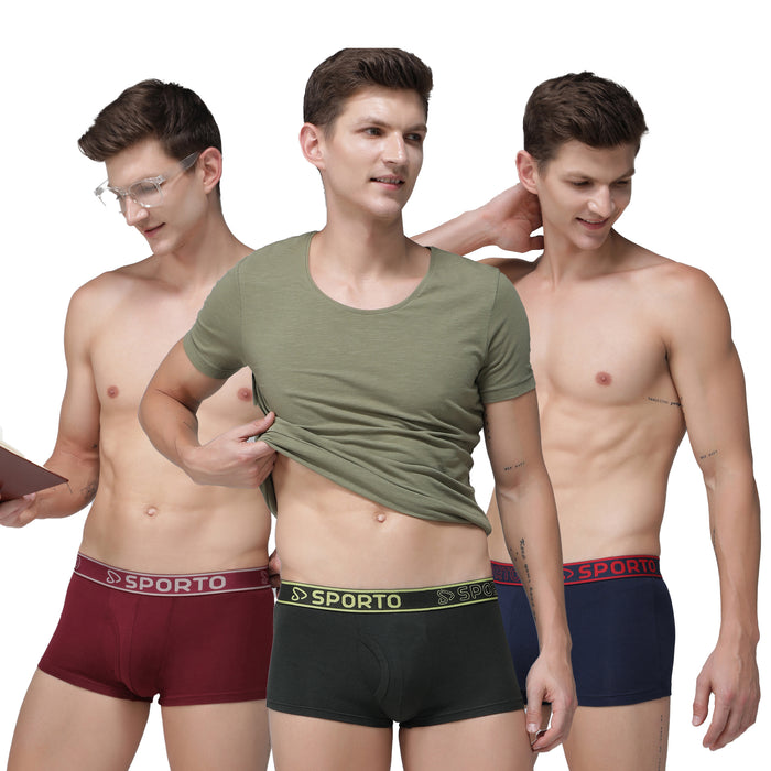Sporto Men's Spandex Square Trunk Pack of 3 - ( Olive, Maroon, Navy )