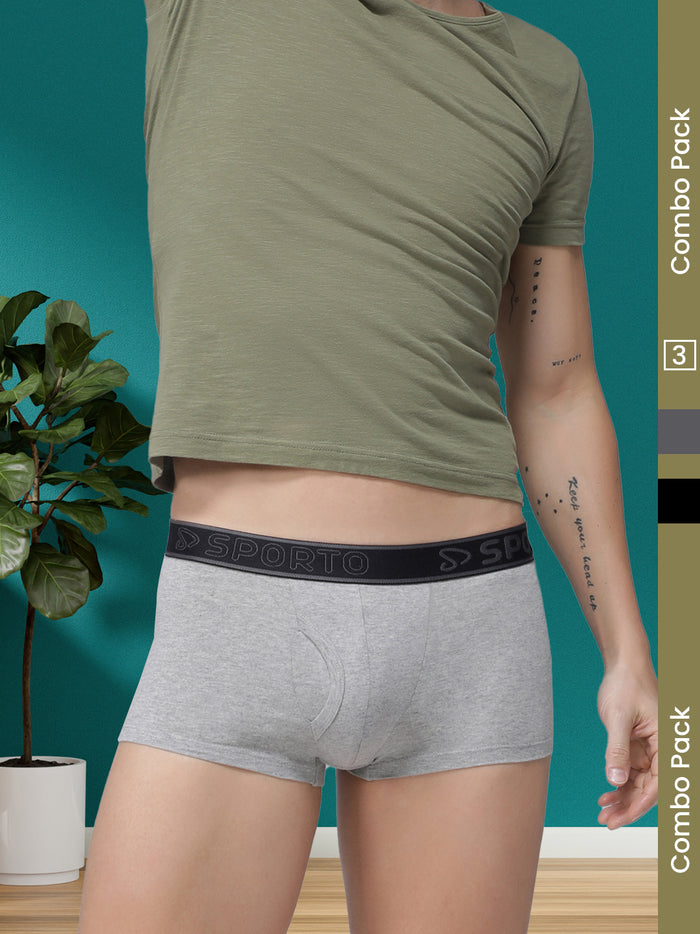 Sporto Men's Spandex Square Trunks (Pack of 3) - Grey Melange + Anthra Melange + Black