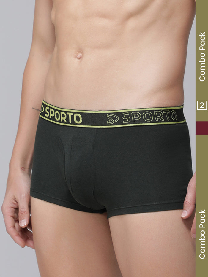 Sporto Men's Spandex Square Trunks (Pack Of 2) - Olive & Maroon
