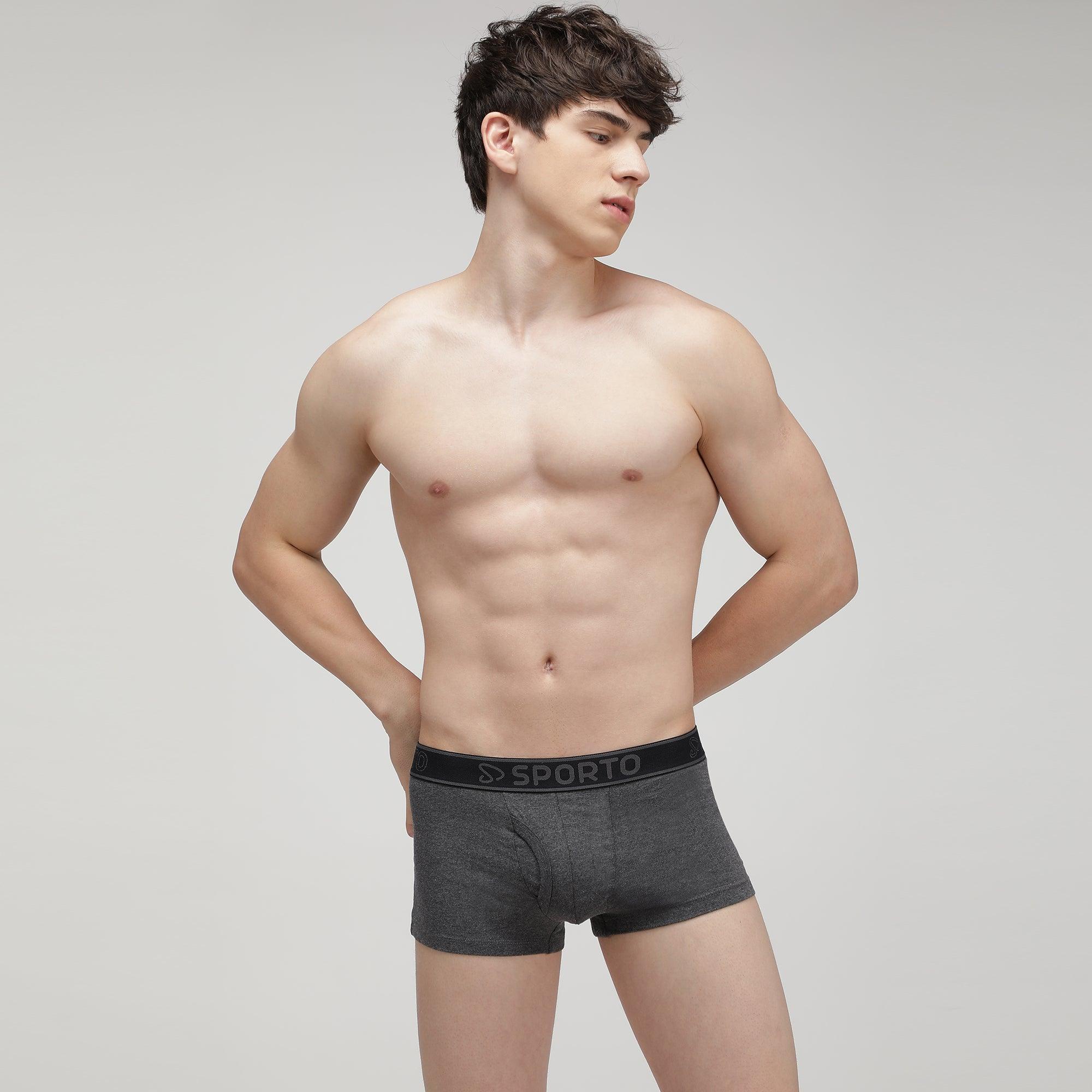 Sporto Men's Spandex Square Trunks (Pack of 3) - Grey Melange + Anthra Melange + Black