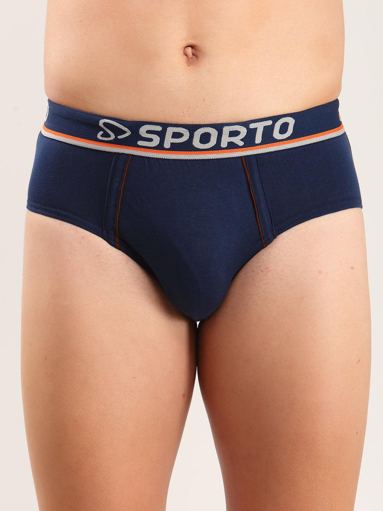 Sporto Men's Solid Cotton Brief (Pack Of 2) Partol Blue + Navy
