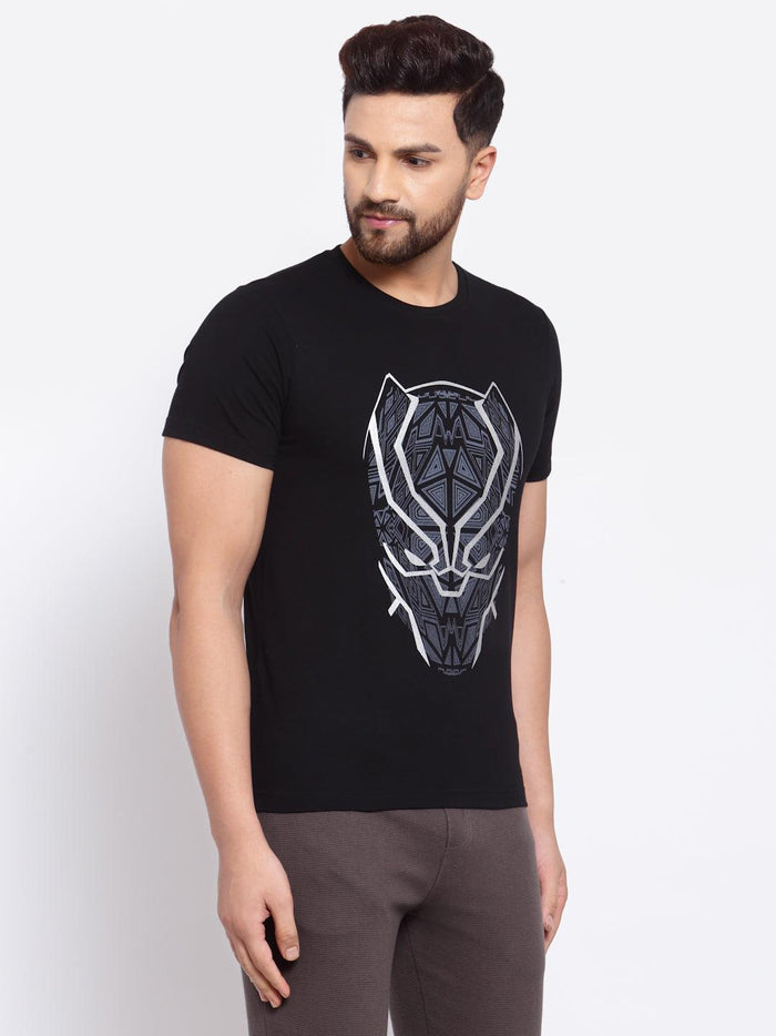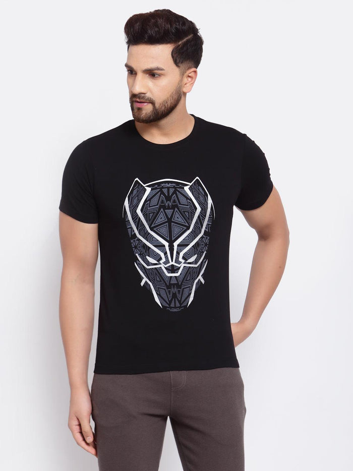 Sporto Men's Black Panther Print Half Sleeve T-shirt