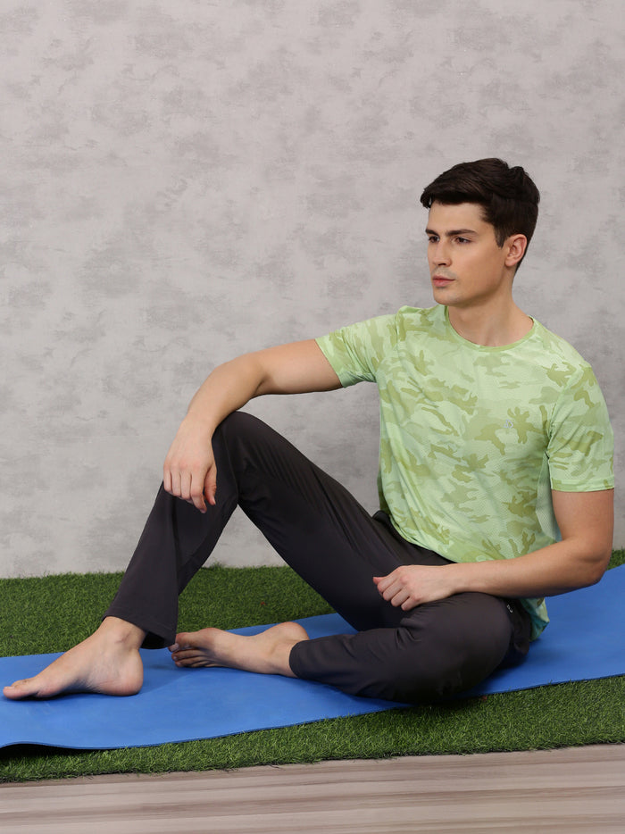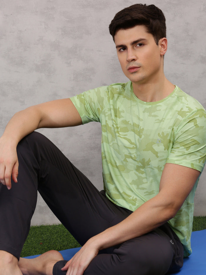 Sporto Men's Instacool Printed Jersey Tee with Side Mesh - Lemon Green