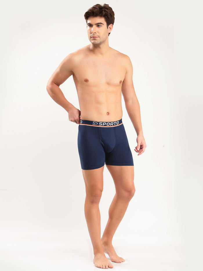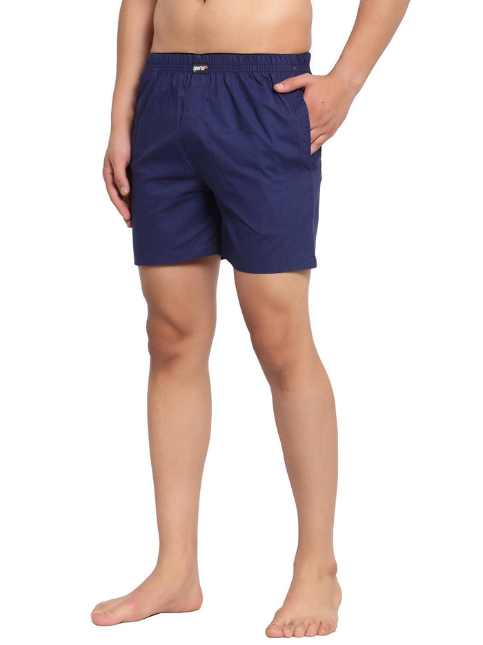 Sporto Men's Solid Cotton Square Trunks - Blue & Navy (Pack Of 2)