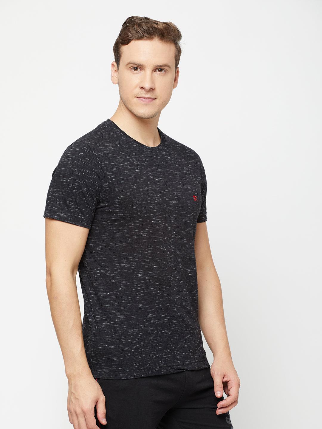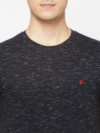 Sporto Men's Round Neck Cotton Tee - Black with Flakes