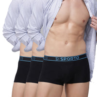 Sporto Men's Cotton Square Trunk (Pack Of 3) - Black