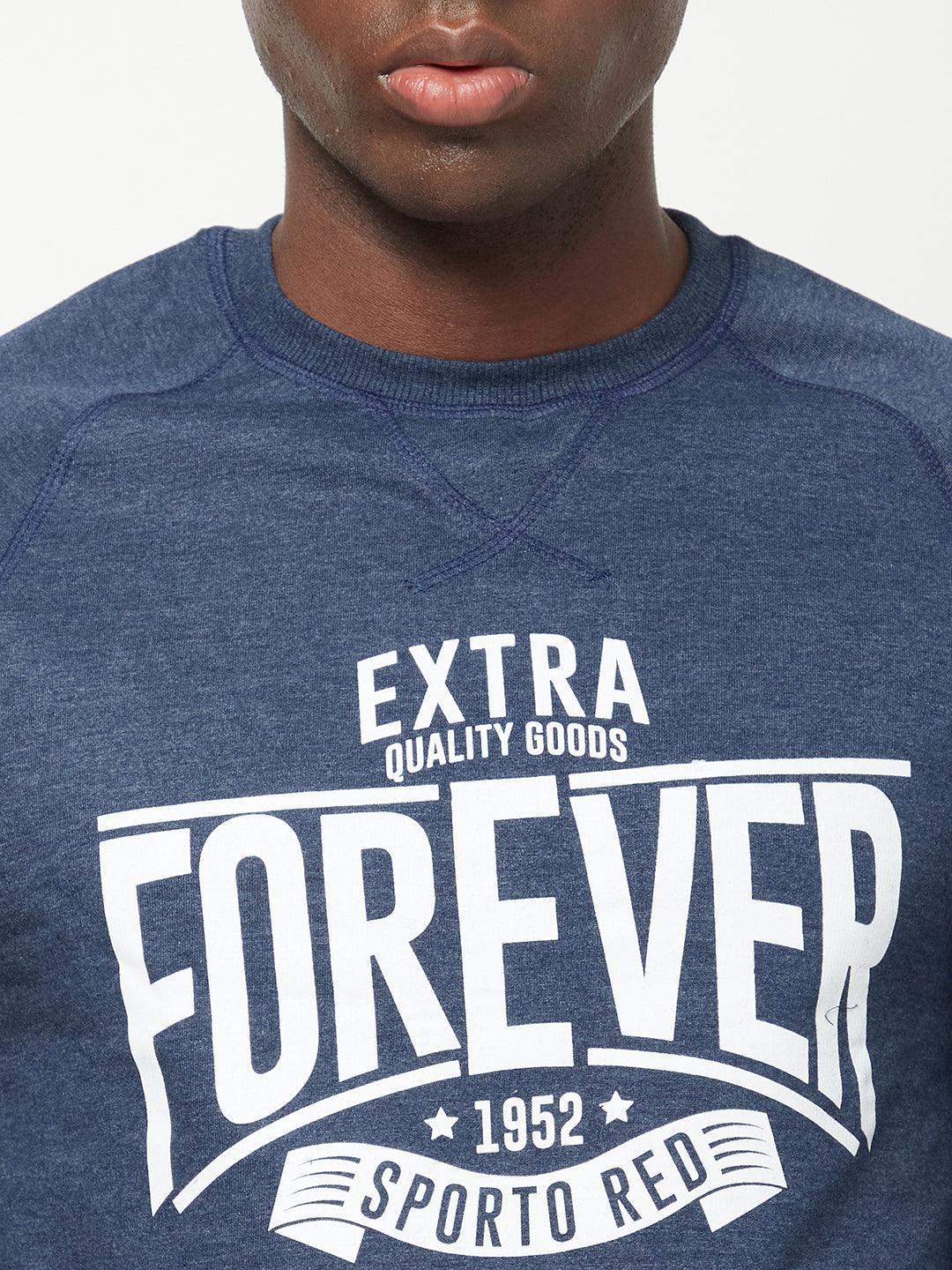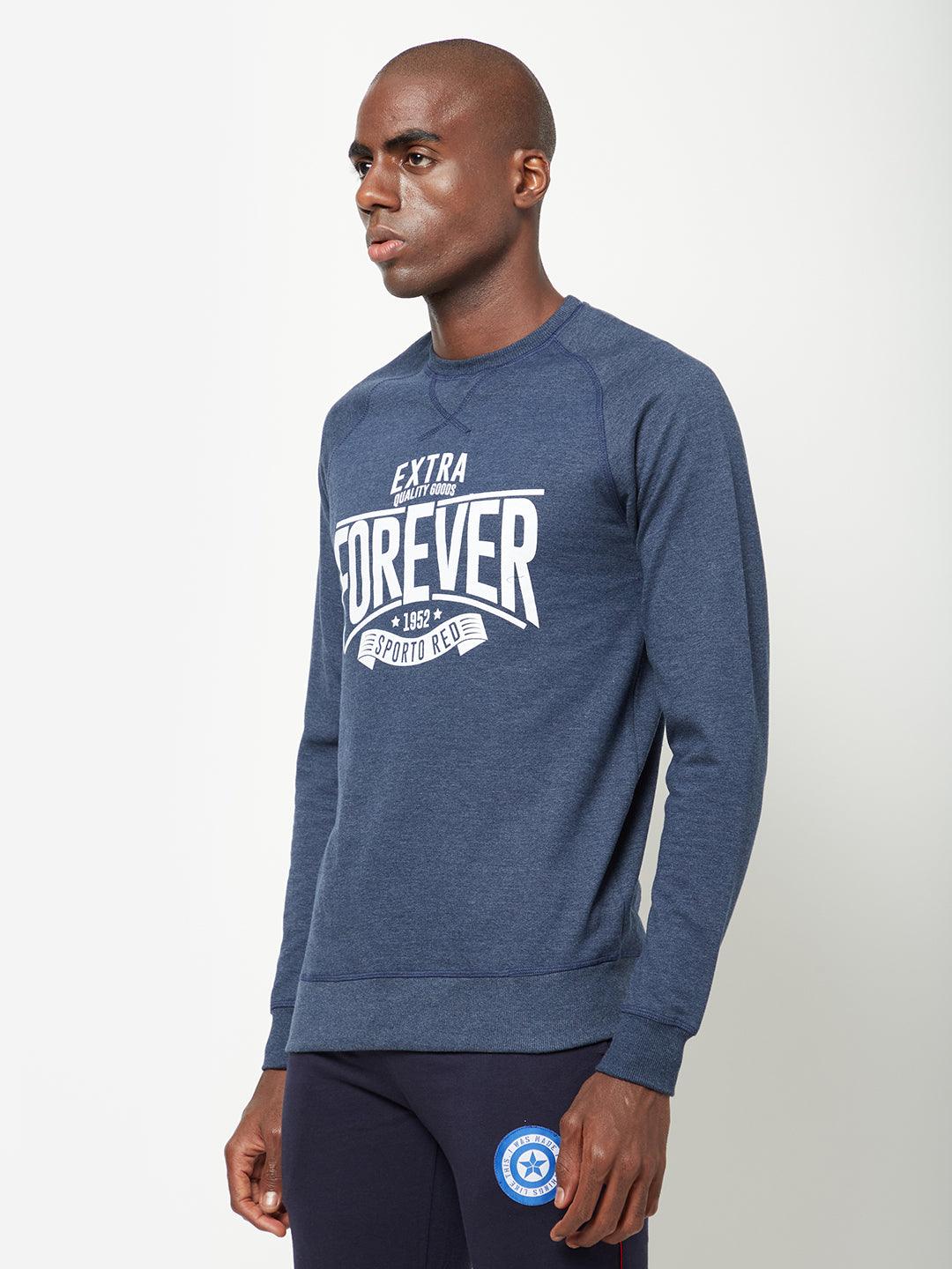 Sporto Crew Neck Printed Sweatshirt - Blue Melange