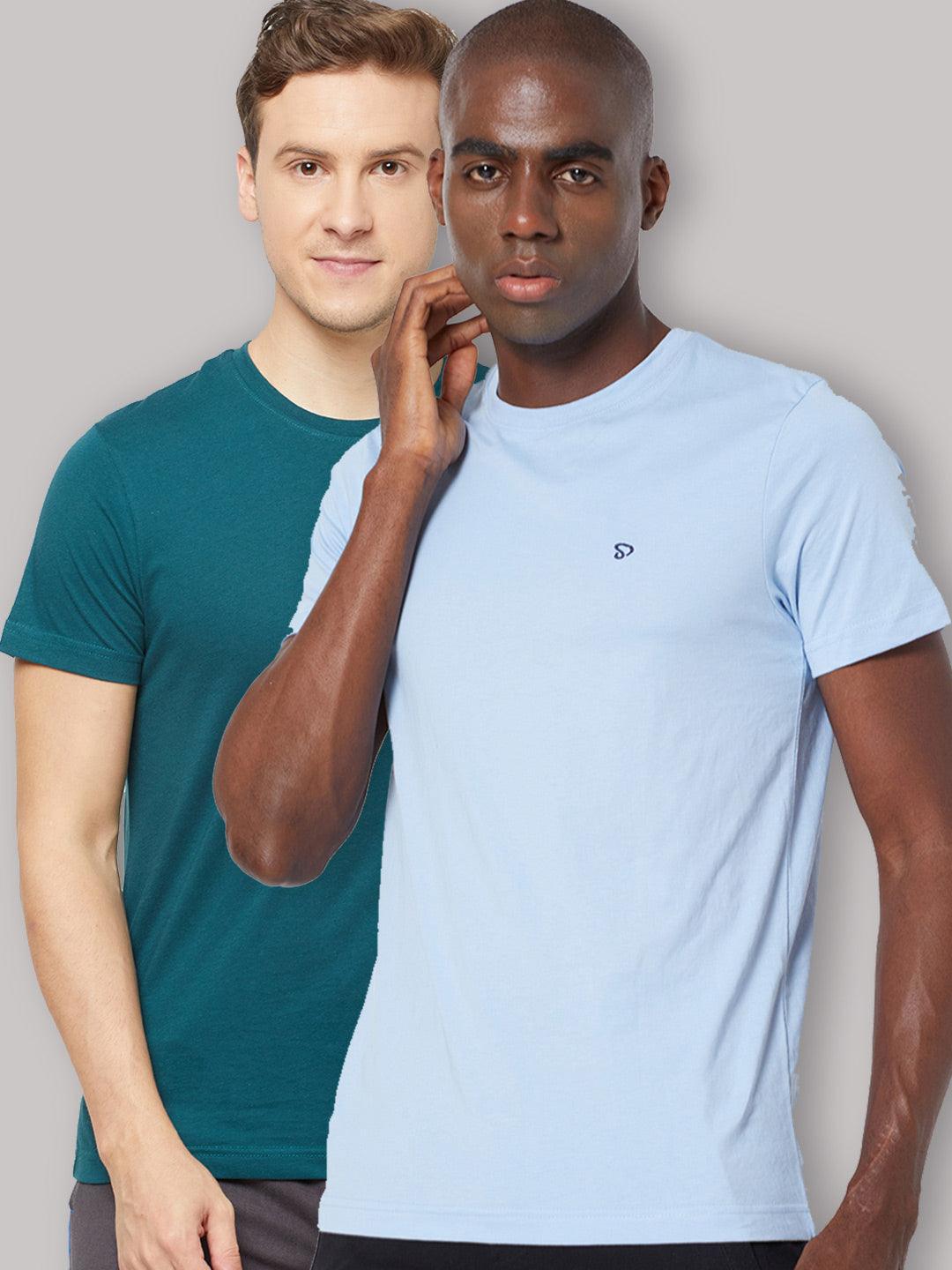 Sporto Men's Round Neck Cotton Rich, Solid Colour T-shirt Pack of 2