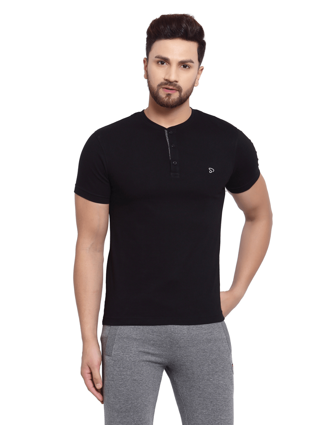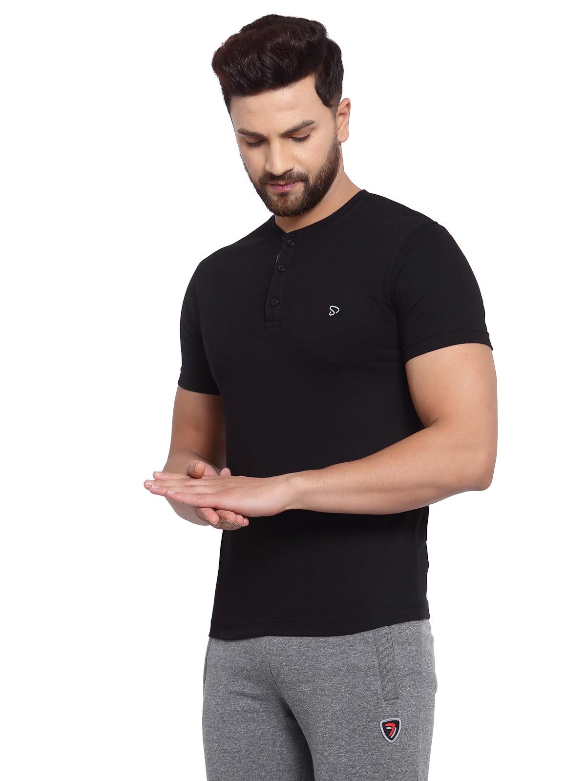 Sporto Men's Henley Neck Cotton T-Shirt - Black