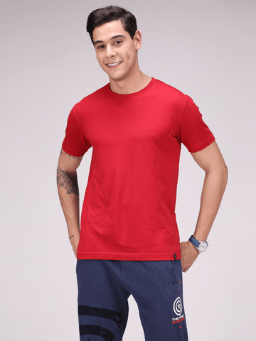Sporto Men's Solid Fluyid Cotton Tee - Chinese Red