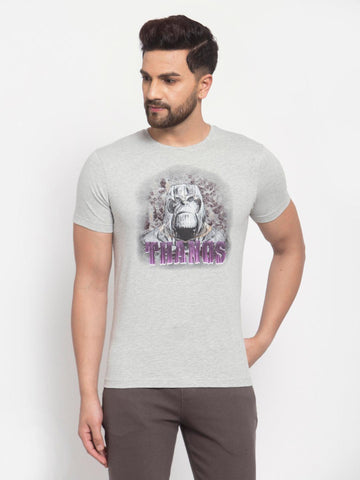 Sporto Men's Thanos Printed Half Sleeve T-Shirt - Grey Melange